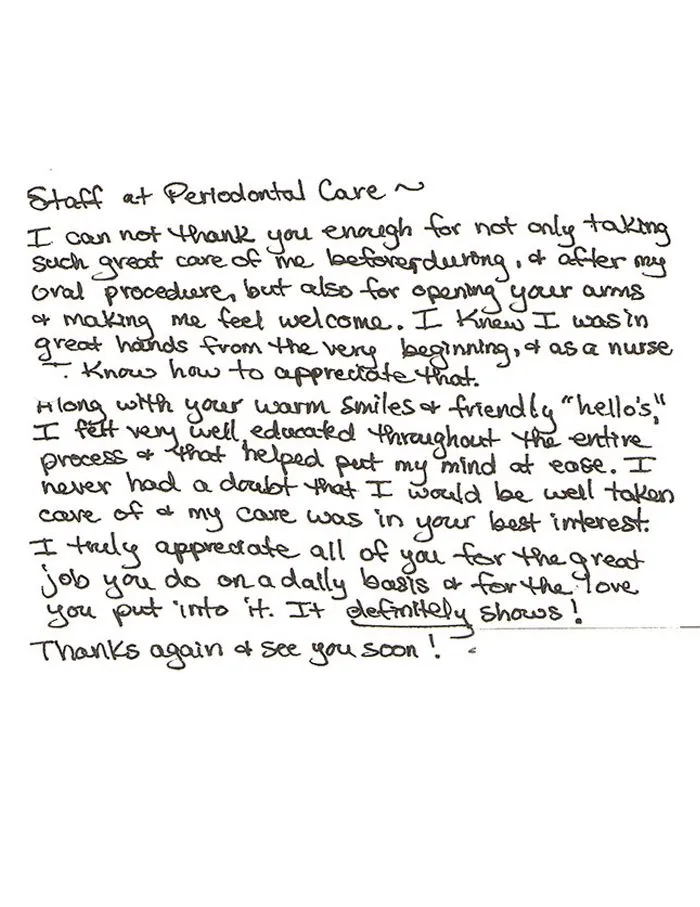 Here are what some of our patients have to say about their experience with our office in their own words....